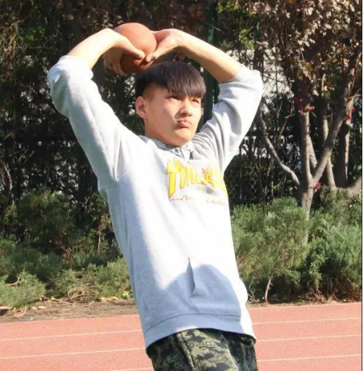 手握铅球,胸有成竹,奋力一抛,寄托着期望。