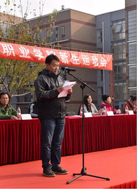 学院各相关专业系及部门负责人出席开幕式,学院学生处处长郭晓捷宣布运动会开幕。