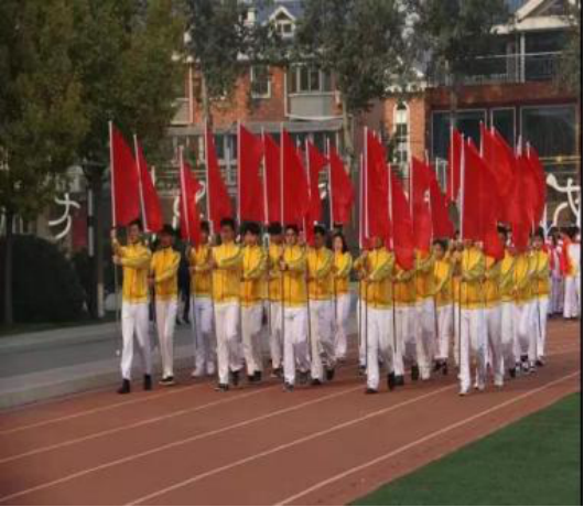 ▲国旗、校旗、红旗队入场