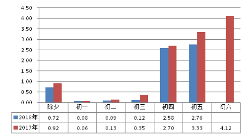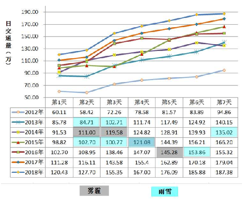 图1 近六年春节假期高速公路日交通量对比图