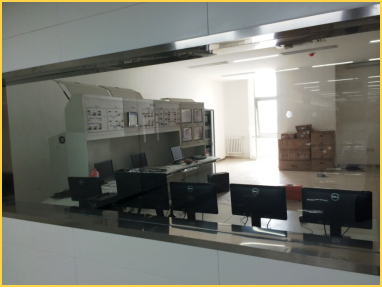 该实训区完全模仿北京地铁九号线郭公庄车站的综控室建设,从二层实训基地的各个实训区采集真实设备或模拟信号,是实训基地的一个小控制中心,可实现与车辆、信号、机电等专业的联动实训项目。