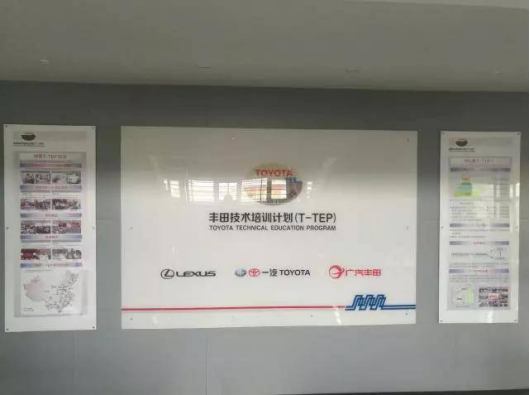 汽车工程系与丰田合作历史悠久,是全国第一丰田校。走过了近30年的合作历程,为丰田企业培养高素质技能人才。为培养学生规范、安全、准确、熟练的各项操作技能,满足企业工作岗位能力培养需求,搭建符合丰田企业实际工作要求的实训基地,这一实训室也成为了全国第一样板实训中心。