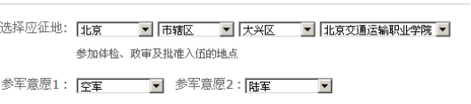 四、应征地填写:如从学院应征,点选如下图(参军意愿可自行选择)