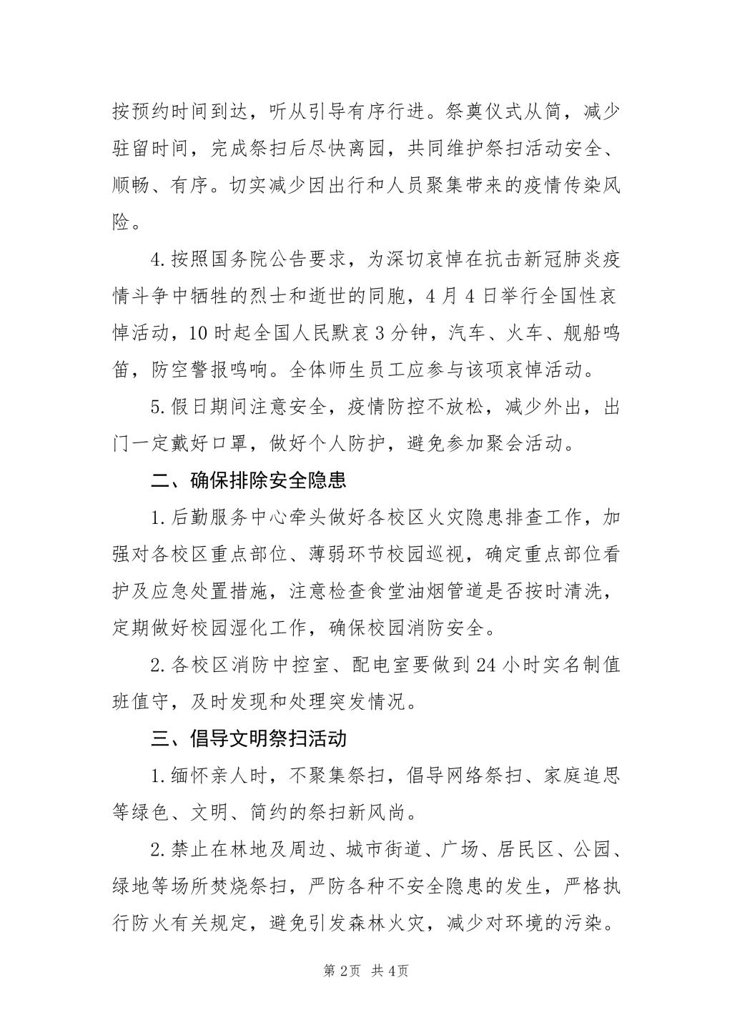 关于加强清明节期间各项管理工作的通知