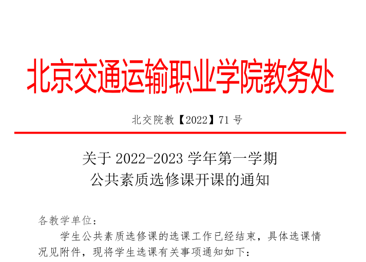 关于2022-2023学年第一学期公共素质选修课开课的通知