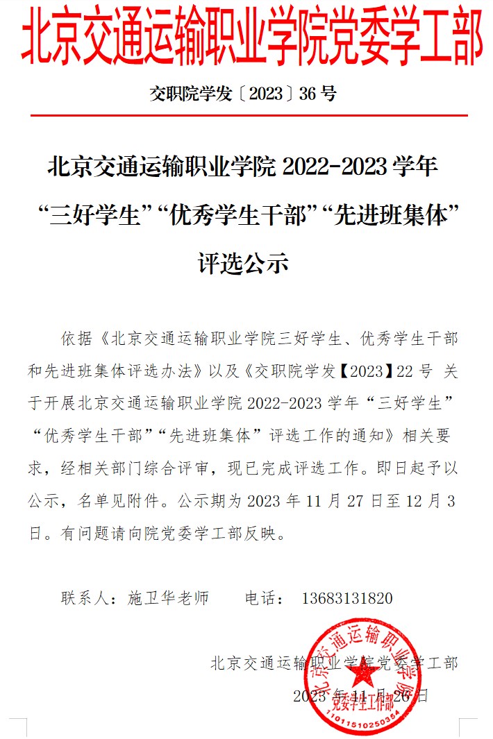 2022-2023学年“三好学生”“优秀学生干部”“先进班集体”评选公示