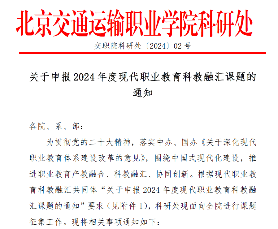 关于申报2024年度现代职业教育科教融汇课题的通知