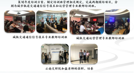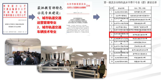 √“师资培训基地”——全国城市轨道交通骨干教师培训基地,北京市教师素质提高工程(城市轨道交通专业群)培训基地;