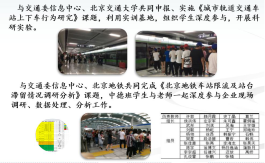 学院是全国城市轨道运输类专业指导委员会主任单位,与北京地铁联合建设有国内最先进的城市轨道交通实训基地,聘请北京地铁各运营单位和设备维修单位的技术骨干和专家为特聘教授参与课程教学和专业建设。同时引进德国德累斯顿工业大学ITS(智能交通)课程共建中德职业本科课程班。