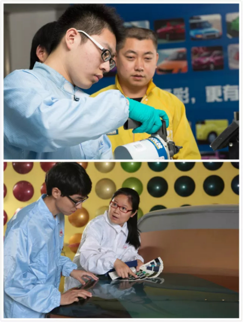 汽车车身系有丰田涂装车间、巴斯夫涂装车间、钣金实训车间等多个实训基地。同时在校内成立雅亮涂装工程顾问有限公司,形成了前店后校的职教模式,在给学生提供丰富的技能实践机会的基础上,也创造了更大的社会效益。通过实训课程,可以训练学生的车辆碰撞损伤鉴定、汽车碰撞钣金修复技术、车身非金属件修复技术、调色技术、车身修补涂装工艺、车况评估与鉴定等核心技术。