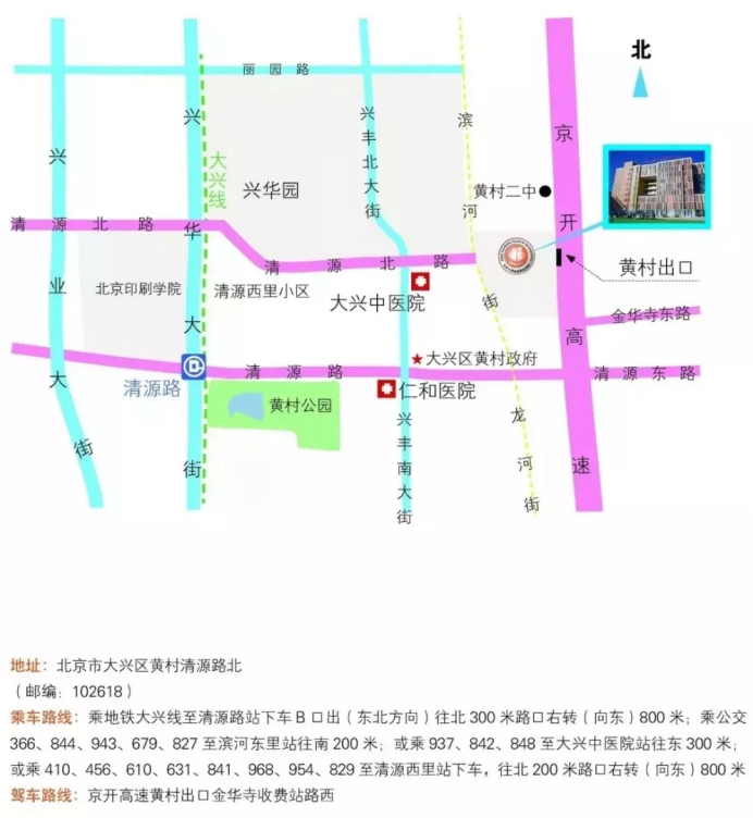 ①、乘地铁大兴线至清源路站下车B出口(东北方向)往北300米路口右转800米;