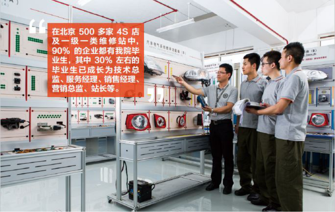 毕业生成为汽车后市场专业技术人员和销售及售后服务人员的精英团队,遍布北京中高端汽车品牌经销店,在汽车诊断与检测、汽车销售与服务管理、汽车钣金与喷漆、汽车配件管理、汽车定损与评估领域发挥了骨干作用。