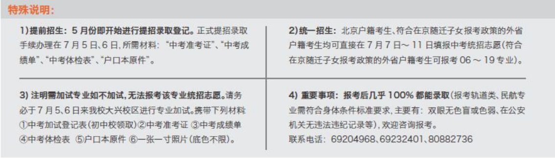 2)统招: 7月7日--11日填报统招志愿,7月底办理审批手续。其中报考轨道运营、轨道车辆、民航运输专业需在7月5日—6日到我院大兴校区进行专业加试。由于就业企业招聘员工的规定,报考轨道类专业原则上为北京户籍考生。