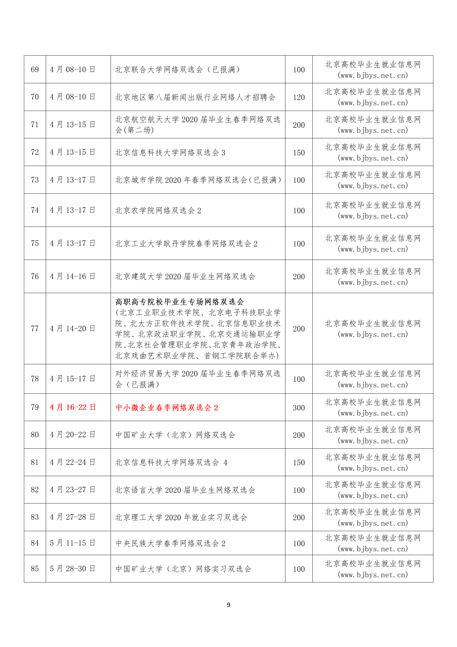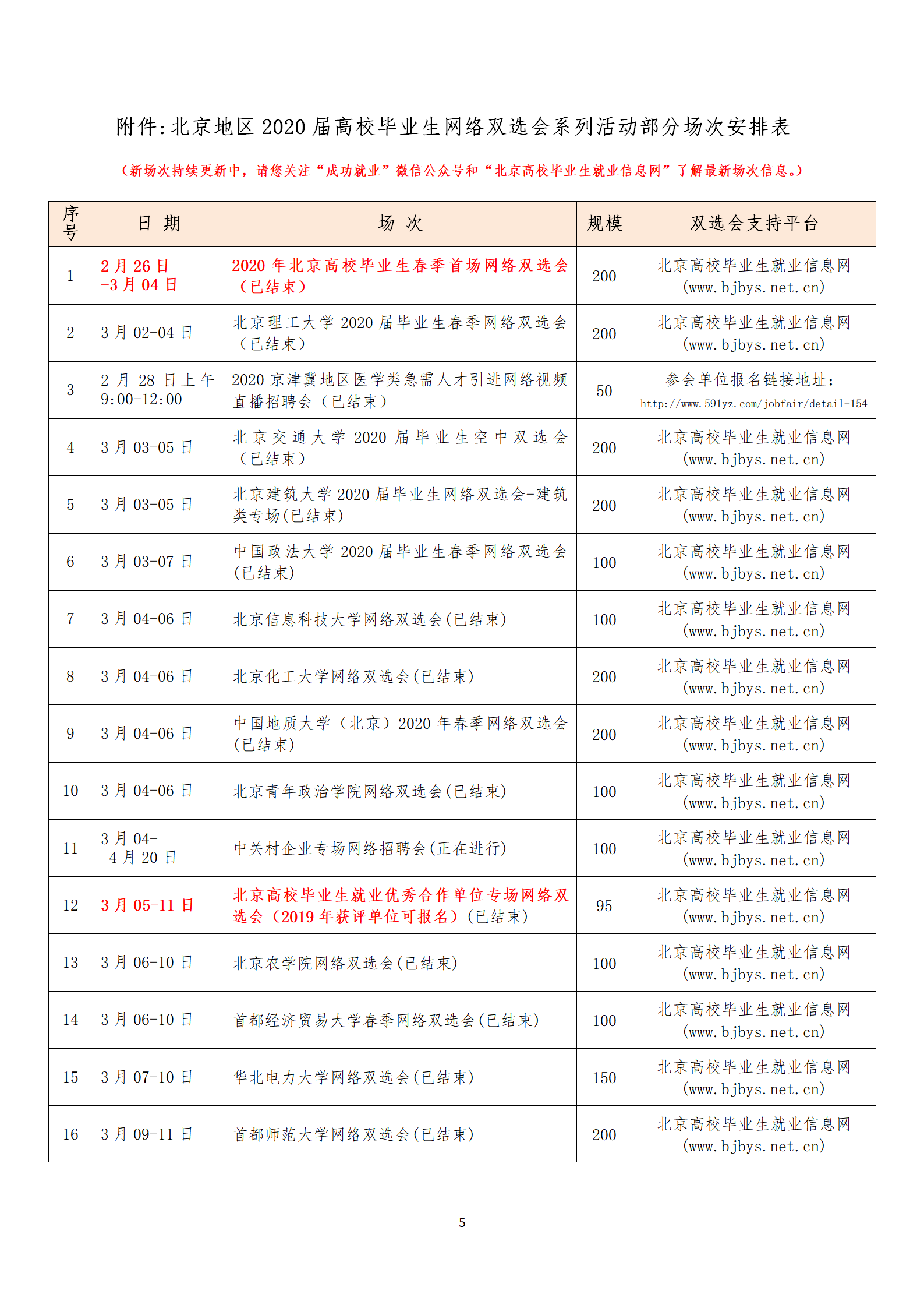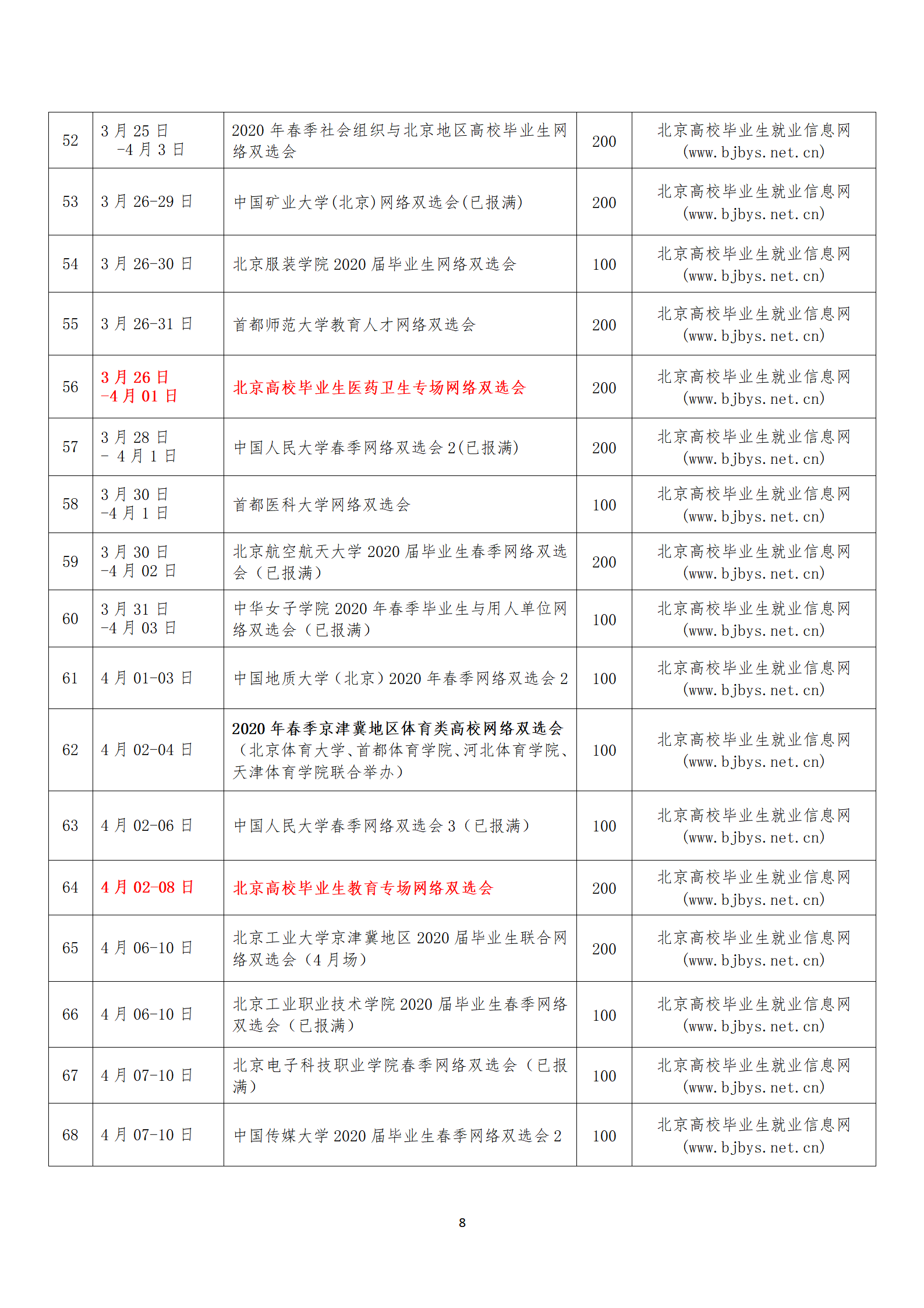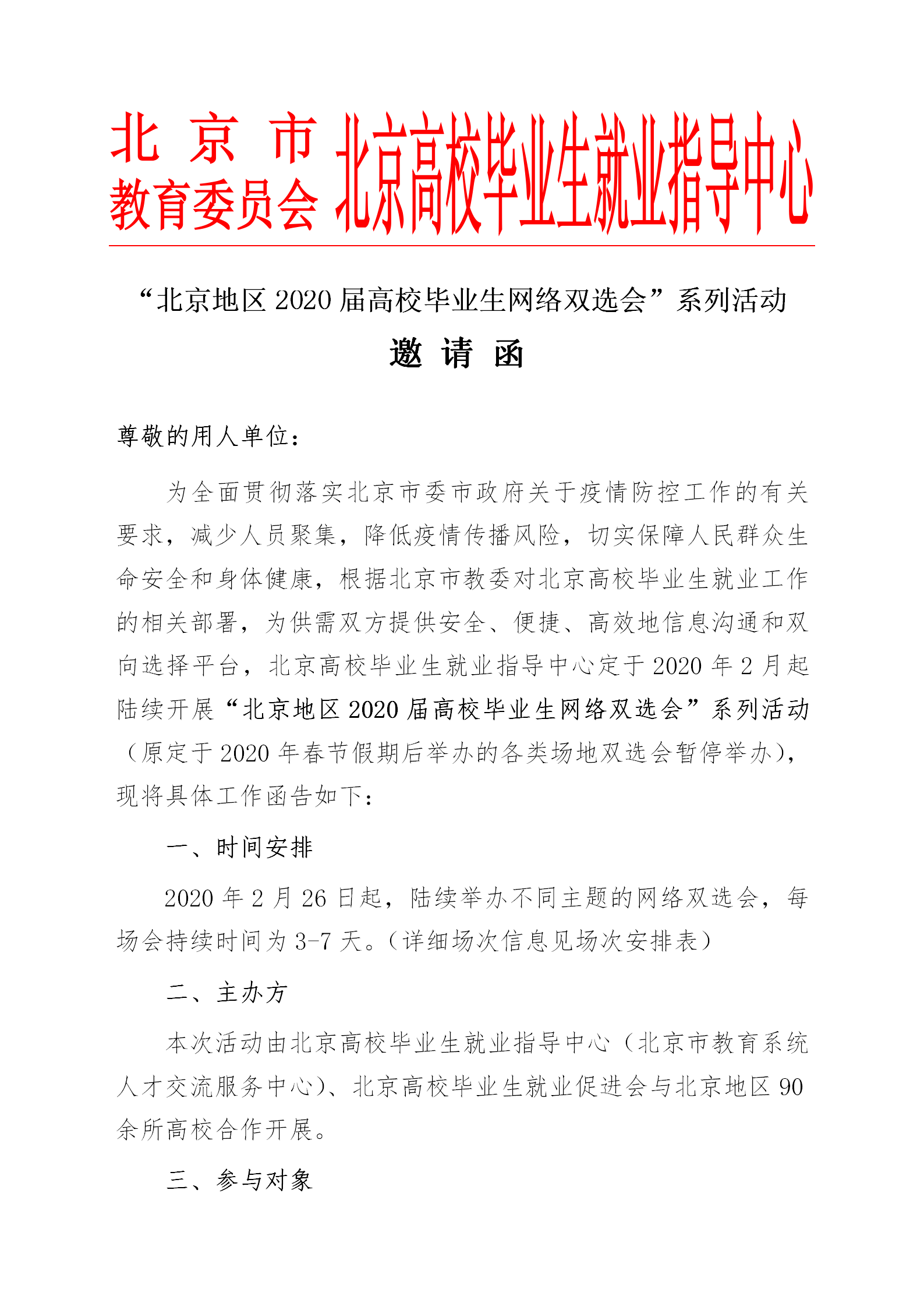 北京地区2020届高校毕业生网络双选会邀请函