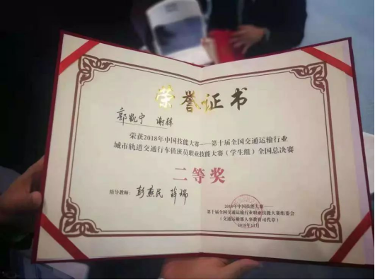 我院由郭凯宁、谢赫、付思思、高俊峰、韩宇组成的参赛队最终获得行车值班员赛项学生组个人二等奖,姜浩宇、金鹏、王昊组成的参赛队获得列车司机赛项学生组个人二等奖,同时学院获得学生组列车司机以及行车值班员团体奖二等奖。