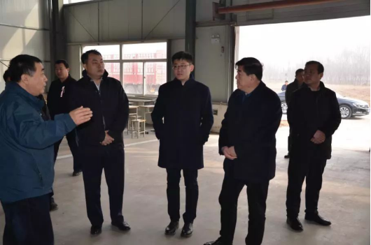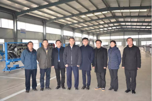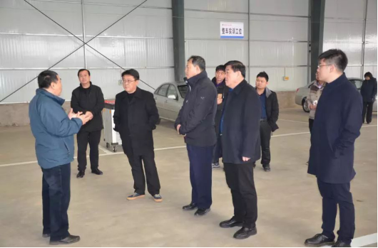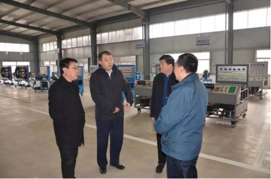 ©几位领导走访威县职教中心汽车实训车间,相关人员介绍了车间目前的建设情况。