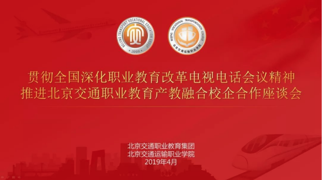 为深入学习贯彻全国、北京市教育大会精神,全面落实李克强总理对全国深化职业教育改革电视电话会议重要批示,推进北京交通职业教育改革发展,促进产教融合、校企合作,全面提升北京交通职业教育服务首都城市战略定位和京津冀交通一体化发展的能力和水平,北京交通职业教育集团、beat365英国官方网站于2019年4月11日上午召开“贯彻全国深化职业教育改革电视电话会议精神,推进北京交通职业教育产教融合校企合作座谈会”。