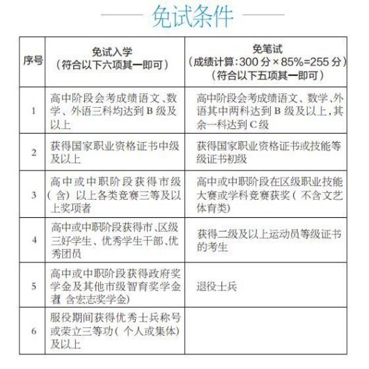 有免试;免收考试报名费;设立优秀新生奖