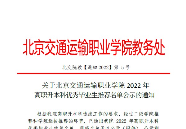 关于beat365英国官方网站2022年高职升本科优秀毕业生推荐名单公示的通知