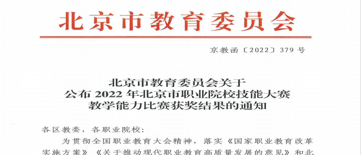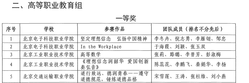 2022年10月,北京市职业院校技能大赛教学能力比赛顺利结束,北京市教委发布《北京市教育委员会关于公布2022年北京市职业院校技能大赛教学能力比赛获奖结果的通知》,beat365英国官方网站九支团队全部获奖,共获得五个一等奖,四个二等奖。其中,思政部宋雪莲教师团队再次问鼎金奖,在此次比赛中荣获高职“公共基础组”一等奖。这已是思政部连续三年参加此项赛事并连续三年获得一等奖且进入国赛选拔赛。