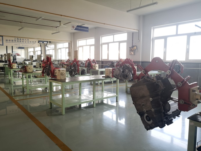 上汽通用ASEP项目理实一体化教学中心面积约1200平方米,设有专用理论教室、工具及资料间、整车实习车间、发动机机械及管理系统实训室、手动及自动变速器实训室、电气及网络系统实训室。其中整车有别克君越、君威、凯越、英朗、雪弗兰科鲁兹等5种车型11辆,发动机共9款14台,手动自动变速器共4种类型14台,GM全球诊断系统GDS2四台,发动机运行台架6台,通用和专用维修工具配备完善并配有相关车型及设备的厂家维修资料,数字化教学资源较为丰富。
