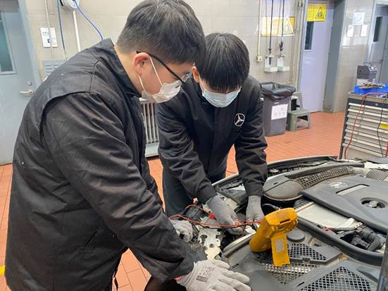 戴姆勒项目的教师来源于我院推荐的现有专业中英语基础较好的中青年教师,教师经过学院推荐、戴姆勒中国选拔考试确定。目前售后机电项目有4名认证教师。为强化戴姆勒中国职业教育项目教师的教学能力,戴姆勒中国将项目内教师送到梅赛德斯·奔驰地区培训中心、德国培训学校以及经销商处培训,成绩合格后承担戴姆勒项目的教学。