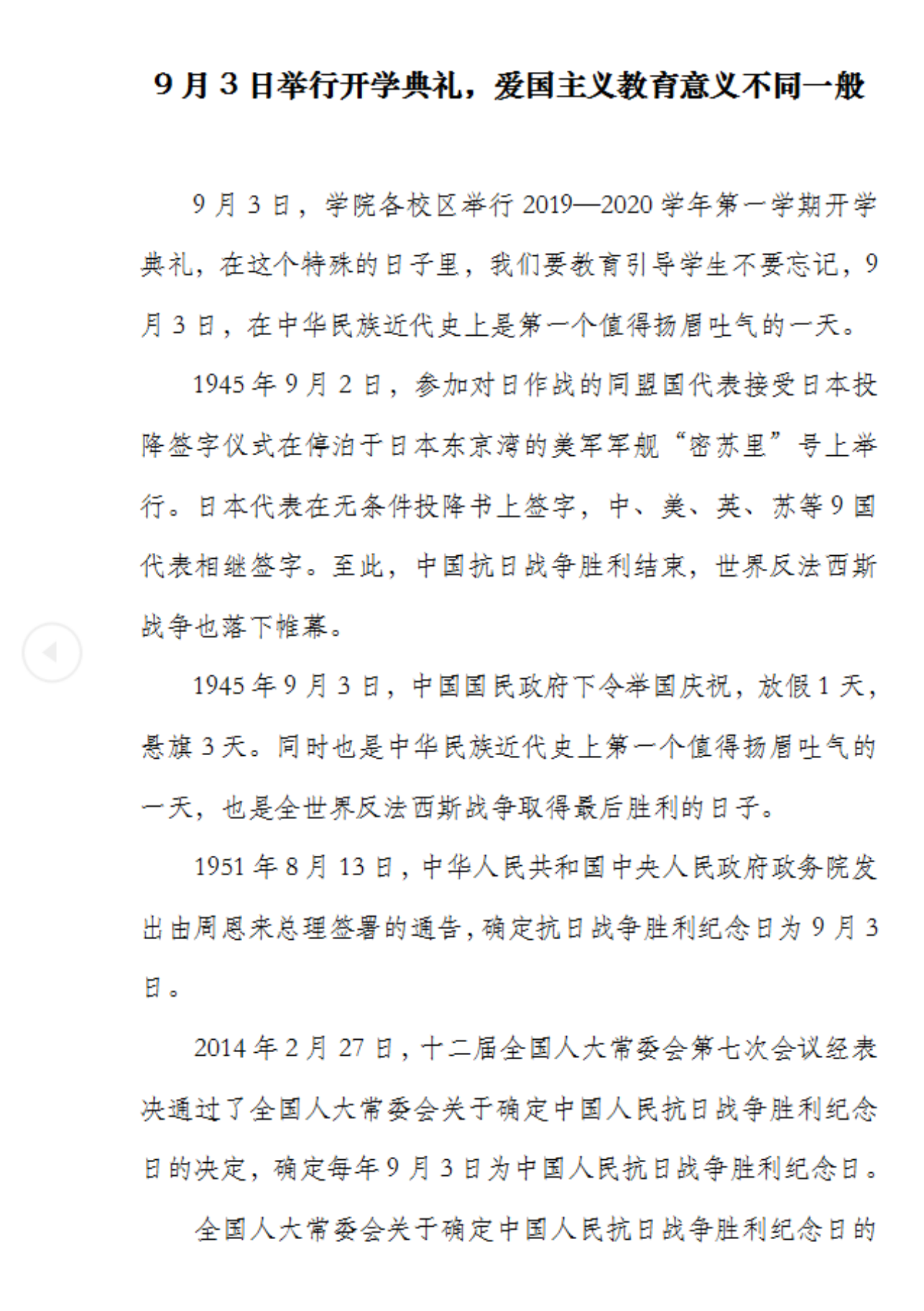 为弘扬爱国主义,以更好地状态迎接新学期,我院各院系召开班级内部“开学第一课”。同学们纷纷阐述了自己新学期的学习规划,并表示希望通过努力学习,为将来报效祖国积淀力量。