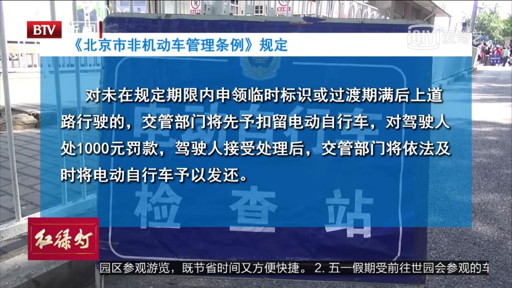 根据北京市交管部门透露,根据《北京市电动自行车过渡期登记和通行管理办法》,电动自行车临时标识申领业务将于4月30日截止,5月1日起,未按规定申领临时标识以及未按规定登记注册并悬挂号牌的电动自行车均不得上路行驶,否则则交管部门将依法予以处罚。
