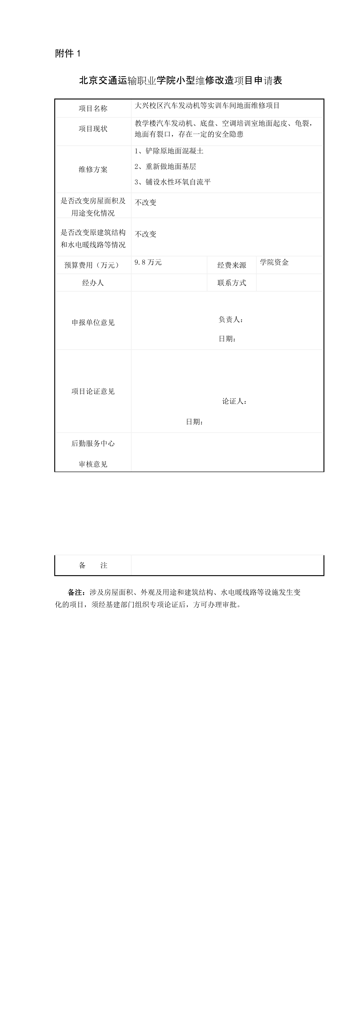 小型维修申报表