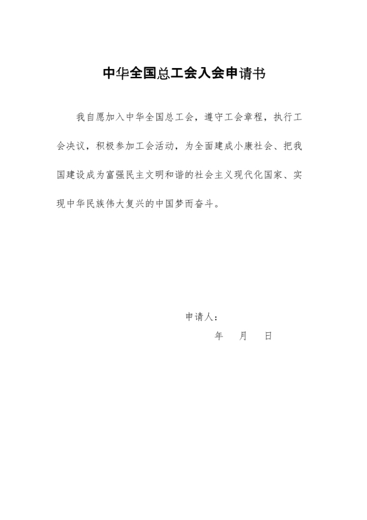 中华全国总工会入会申请书