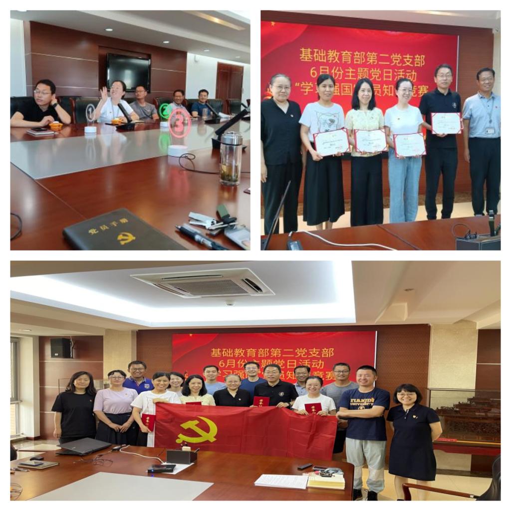 基础教育部第二党支部组织开展“学习强国知识竞赛”主题党日活动。初赛阶段通过学习强国双人对战,选出了刘伯超、唐晓玲、张国芳和李桂亭四位党员同志晋级决赛。决赛于6月25日在海淀校区会议室举行,分为必答和抢答两个环节。比赛现场气氛热烈,充满活力。经过激烈角逐,张国芳、刘伯超和唐晓玲分别获得冠亚季军。赛后,全体支部党员合影留念并纷纷表示活动内容丰富,形式新颖,过程有趣,不仅有助于支部党员学习党史理论和知识,还能增进友谊,增强支部的凝聚力,今后将不断加强学习,增强自身党性修养,坚定理想信念,认真履职尽责,争做北交院的先锋党员。
