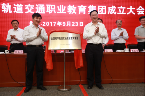2017年9月23日,经全国交通运输职业教育教学指导委员会批准,全国城市轨道交通职业教育集团成立大会在北京会议中心举行。全国近170家成员单位代表参加会议。交通运输部、教育部职成司、北京市交通委、北京市教委等有关领导出席并讲话。交通运输部刘小明副部长、教育部职成司王继平司长共同为集团揭牌。