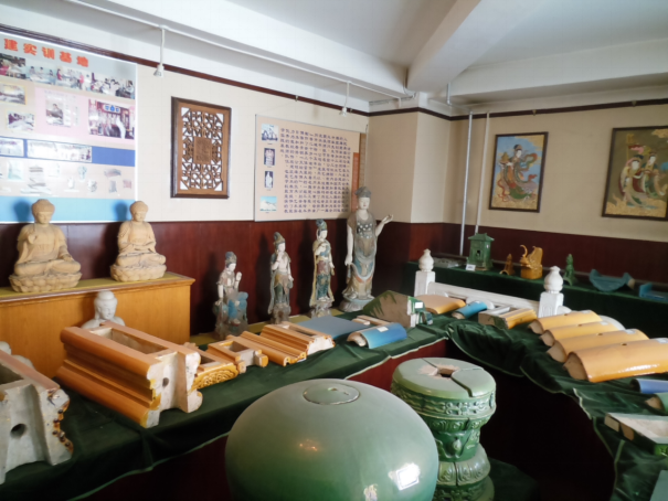 实训基地使用面积500平米,分为古建模型室、民居室内装饰陈设室、瓦石雕塑室、操作机械与工具室、木作室、彩画室、古建研讨室八个部分。其中,古建模型室是传统建筑、建筑艺术模型实物展厅,收集制作了传统建筑单体建筑模型、结构模型、组合体模型、构配件模型。其木作室的各类斗拱按比例可以拆卸、组装,供学生学习和动手操作。模型室的木雕、砖雕、石雕和其他各类展品,如:歇山、庑殿、悬山、硬山、攒尖顶的建筑、厅、台、楼、阁和珍贵的建筑造型组成了典型有序的古建世界。民居陈设室为学生提供了观察、学习、测绘的条件、不但使学生开阔了眼界也提供了典型的职业环境。古建操作机械室、油漆彩画室配备了各类机械、工具、材料,学生可以进行木作雕刻、油漆彩画制作。